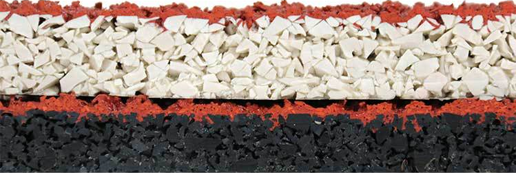 傳統(tǒng)型的塑膠跑道,是在底膠凝固前,表面粘合防滑顆粒,形成防滑層。我公司根據(jù)以往的施工經(jīng)驗(yàn)及產(chǎn)品使用效果,進(jìn)一步改進(jìn)施工工藝,完善產(chǎn)品使用性能,推出更新?lián)Q代產(chǎn)品——防脫粒型塑膠跑道。